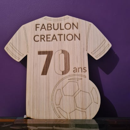 Nous vous proposont se magnifique tee-shirt découper et gravé en bois qui entirèrement personnalisable pour tout les amateurs de football. Taille 29x29 cm , Demander votre personnalisation par mail a fabuloncreation18@gmail.com
