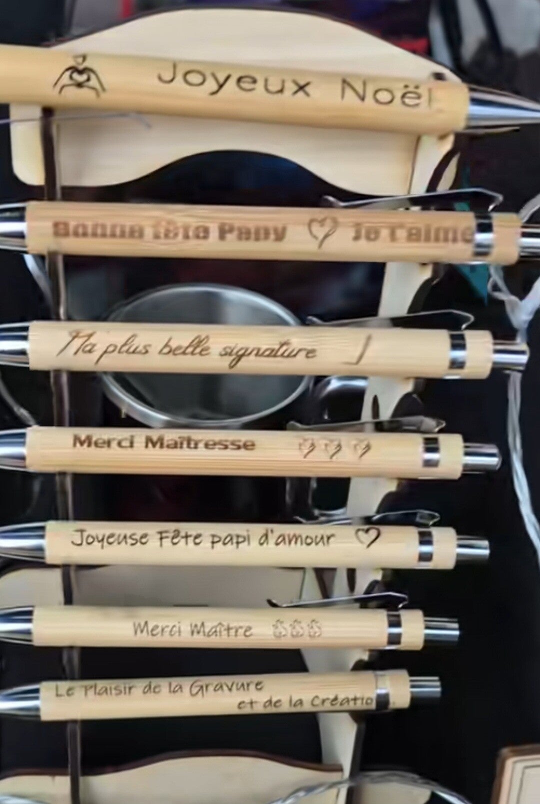 Stylos bille poussoir en bambou personnalisable EN GRAVURE